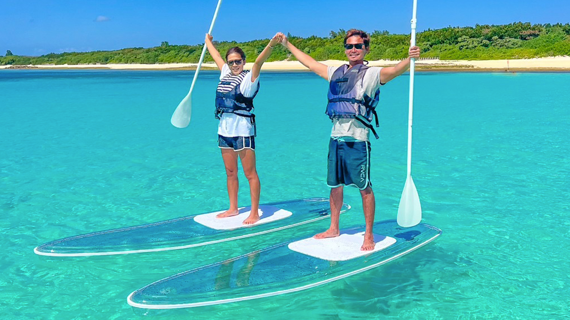 エメラルドグリーンに輝く宮古島の海をクリアSUP/クリアカヤッククルーズしませんか?
